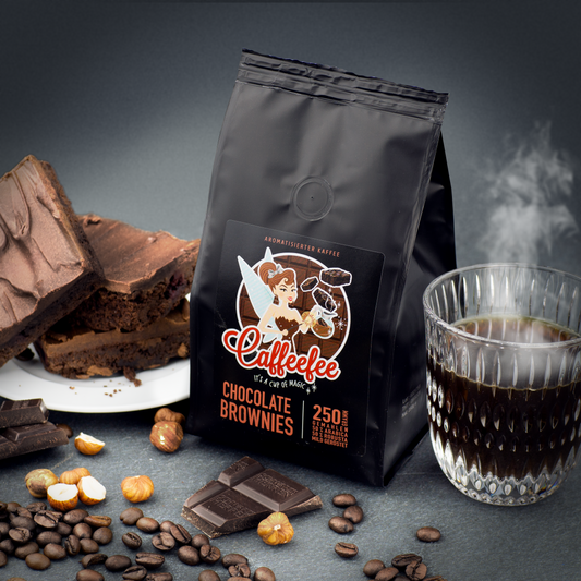 Anders als die mit Sirup aromatisierten Kaffees der bekannten Coffeeshop-Ketten ist Flavored Coffee von Caffeefee kalorienfrei. Es ist weiterhin einfach ein Bohnen- oder Filterkaffee, jedoch mit leckeren Noten so verrückter Geschmacksrichtungen wie "Chocolate Brownies", "Caramel Kiss" oder "Delicious Donuts". Ganz ohne Sirup, Zucker oder Süßstoffe. Schon wenn du den Beutel öffnest, wird dich der Duft verzaubern!
